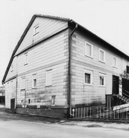Giebelständiges Einhaus über unregelmäßigem Grundriß, das durch einen ageschleppten traufseitigem Anbau erweitert ist; unter der allseitigen Verkleidung ist ein Rähmbau der ersten Hälfte des 19. Jhs. mit Fachwerk, das bis in den Keller reicht, zu erwarten. Noch erhalten ist die Haustür aus dem 19. Jh.