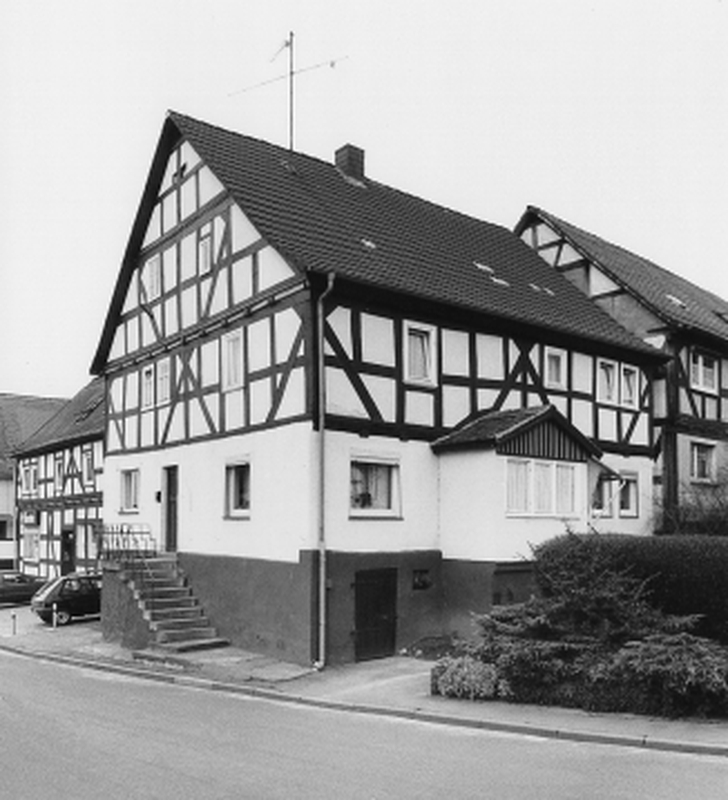 In der Sichtachse der Hauptstraße gelegenes Wohnhaus auf hohem verputztem Sockel, das Erdgeschoß inzwischen massiv erneuert, im Obergeschoß Rähmfachwerk mit breitgestellten Streben, im Giebeldreieck differenziert ausgebildeter Geschoßversprung und geteilte Mannfigur. Ähnlich wie Hauptstraße 18 beherbergt der Bau aus der ersten Hälfte des 18. Jhs. zwei Hausstellen.