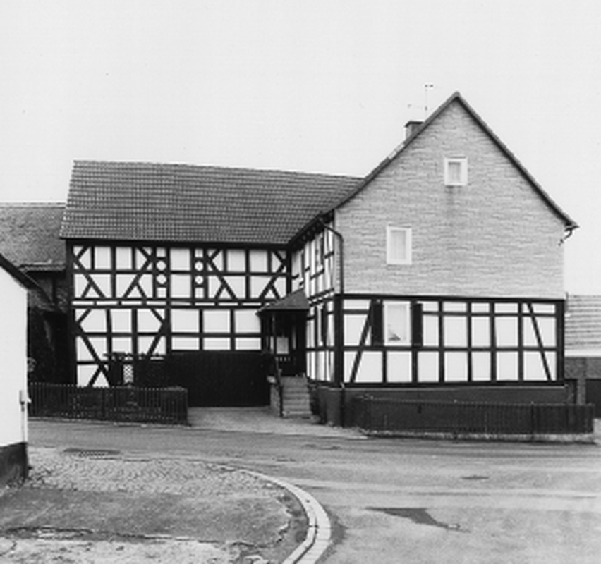 Winkelhof mit städtebaulicher Bedeutung als Kopfbau der Hintergasse; giebelständiges Wohnhaus in konstruktivem Fachwerk; von Interesse der Wirtschaftsteil, der durch K-Verstrebungen mit Sporn und achteckigen Schmuckformen Aufmerksamkeit auf sich zieht. Entstehungszeit zwischen 1860 und 1880.