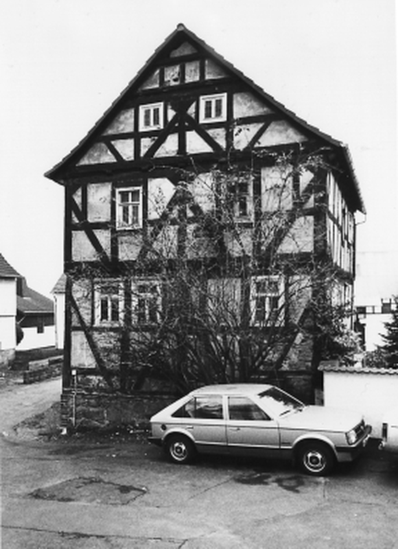 Für die Platzaufweitung „Am Herzberg" bedeutsames Wohnhaus in Ecklage, Rähmkonstruktion der ersten Hälfte des 18. Jhs. mit z.T. breitstehenden Mannverstrebungen und Profilierungen am Geschoßversatz, die Fußschwellen noch als Riegel verzimmert. Erhalten sind einige mit Bleisprossen unterteilte Fenster, im Erdgeschoß bereits massive Erneuerungen.