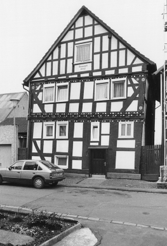 Giebelständiges Wohnhaus als wichtiger Teil der geschlossenen Straßenrandbebeauung „Im Tal". Wie bei etlichen Bauten in dieser Zeile Ausbildung einer Schauseite: Hölzer des Geschoßwechsels mit Schnitzverzierung durch Tauband, Zahnschnittfries und Schuppen, die Eckstiele mit geschuppten Säulen und Rosetten. Das bis in den Keller reichende Rähmfachwerk ist durch K-Streben mit Kopfholz ausgesteift, das Gewände der alten Eingangstür noch erkennbar. Der auch aus künstlerischen Gründen unter Schutz gestellte Bau, um 1700 errichtet, wurde in späterer Zeit mit einem neuen Dachstuhl versehen.
