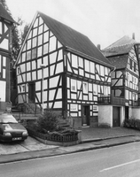 Traufständiges Wohnhaus mit zwei Untergeschossen, ursprünglich in Ständerbauweise errichtet, das Obergeschoß ist als Rähmbau aufgesetzt. Der straßenseitige Geschoßversatz ist mit Taubandschnitzerei verziert, die Eckstiele sind mit geschuppten Säulen und eine Maskendarstellung geschmückt. Der beschriebene Bautypus legt eine Entstehung um 1700 nahe. Das Gebäude faßt zusammen mit Nr. 14 den Aufgang zur Burg. Störung durch einen aus der Hausflucht vortretenden Garageneinbau.