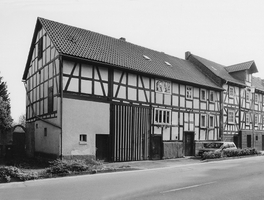Kleinbäuerlicher Hof aus der zweiten Hälfte des 19. Jhs. in Form eines in mehreren Bauphasen errichteten Einhauses. Der Bau wurde in konstruktivem Fachwerk mit tiefliegendem Eingang ausgeführt,; er knüpft noch an den Typ des Ernhauses an und ist wichtiger Bestandteil der geschlossenen Reihe traufständiger, z. T. direkt aneinandergebauter kleinbäuerlicher Anwesen im Bereich der Ortserweiterung des späten 19. Jhs.