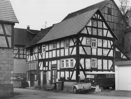 Traufständiges Einhaus auf kleinem Grundstück als Rähmbau des 18. Jhs. mit leichtem Geschoßversatz, das Fachwerk mit auf dem Sockel stehenden Eckstielen und K-Streben als Diagonalverband. In den Gefachen Reste von Kratzputz. Tiefliegender Eingang durch mittig angeordnete, originale Haustür mit Oberlicht und verwitterte Inschrift. Unter der Stube Keller mit Zugang von außen. Wichtiger Bau im Dorfgefüge, der Zeugnis ablegt von den Wohn- und Wirtschaftsbedingungen der „kleinen Leute".