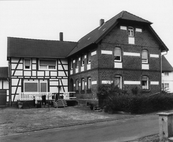 Hofanlage, bestehend aus Wohnhaus und mehreren Wirtschaftsbauten, die auf dem tiefen Grundstück bis zur Straße Buchseite reichen. Das Wohnhaus markiert als massiver Ziegelsteinbau eine Einmündung zur Mittelstraße. Das mit Hilfe von Formsteinen für die Fenster und durch den rundbogigen Eingang gestaltete Sichtmauerwerk ist zur horizontalen Gliederung in den Brüstungen und in Zweidrittelhöhe der einzelnen Geschosse durch glatte Putzfelder unterbrochen. Den oberen Abschluß bildet ein Krüppelwalm-Mansarddach mit giebelseitigem Dachüberstand durch ein Ziergespärre. Links an das Wohnhaus angefügt ist ein Fachwerkergänzungsbau in konstruktivem Gefüge. Unter Schutz gestellt ist auch die Scheune links, die als Fachwerkbau des ausgehenden 19. Jhs. den Hof zur Straße hin begrenzt.