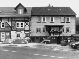 Schräg im Straßenraum stehender, traufständiger Streckhof, das Wohnhaus ein Rähmbau der zweiten Hälfte des 19. Jhs. auf hohem Sandsteinsockel, in dem der Stall untergebracht war,. Die Fassade ist teilweise mit Holzschindeln behangen. Als Detail haben sich die in Wellenform ausgesägten Fenstereinfassungen erhalten. Die Wirtschaftszone links ist zu Wohnzwecken umgebaut. Das Objekt ist von sozialgeschichtlicher Bedeutung als Lebens- und Wirtschaftsstätte eines Tagelöhners oder Handwerkers.