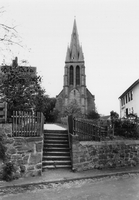 Nach dem Dorfbrand von 1875 als historisierender Ersatzbau im neogotischen Stil errichtete Kirche, deren eindrucksvolle Lage auf dem nach Osten stark abfallenden Gelände durch eine hohe Bruchsteinmauer gesichert wird. Hier eingefügt ein barocker Grabstein mit bildlicher Darstellung. Die Kirche überragt die Dachlandschaft des Dorfes und ist durch ihren hohen Turm insbesondere von Süden her der bestimmte Bau in der Ortssilhouette. Nördlich des Kirchengebäudes ein auf mehrstufigem Sockel aufbauendes Ehrenmal des Ersten Weltkrieges mit kniendem Soldaten als Bekrönung, Inschrift: „Ihren im Weltkrieg 1914-1918 gefallenen Söhnen gewidmet, Gemeinde Mengsberg".