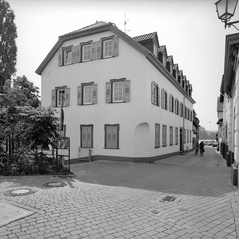 Verputztes, zweigeschossiges Wohnhaus des 18. Jhs. Über acht Achsen langgestreckter, voluminöser Traufenbau mit Kniestock und breitem Krüppelwalm. Die nördliche, dreiachsige Giebelfassade ist am heutigen sog. Entenplatz weithin sichtbar. Türen- und Fensteröffnungen mit Ohrenumrahmungen im massiven Erdgeschoss aus Sandstein, im Obergeschoss aus Holz, ebenfalls in Ohrenform (erneuert). Das Haus kennzeichnet noch die ursprüngliche Straßenflucht der ehemals sehr schmalen, von geschlossener Bebauung gesäumten Gasse.