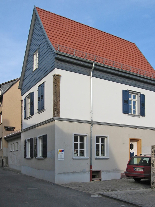 Zwei geschnitzte Eckpfosten eines nicht erhaltenen Fachwerkhauses von 1617 wurden im 19. Jh. in ein jüngeres Haus integriert und nach dessen Abbruch in den jetzigen Neubau übernommen. Die Hölzer zeigen Renaissance-Ornamentik mit verziertem Eckstab, Voluten und Akanthusblättern, eines außerdem die Inschrift „IB 1617 VAI".