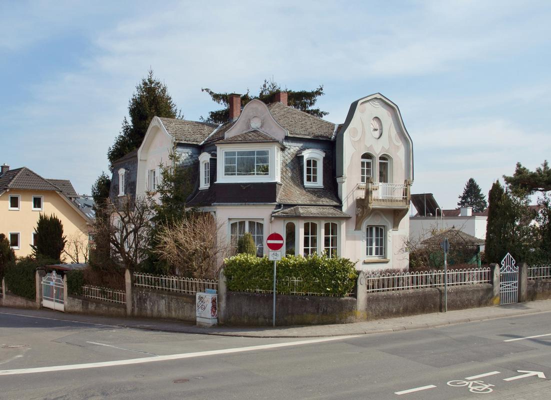 Wie das gegenüberliegende Wohnhaus Nr. 1 eingeschossiger, durch vielgestaltige Giebel- und Dachformen auffallender, vom Jugendstil geprägter Bau. Drei geschwungene Giebelzwerchhäuser in leicht variierter Ausformung betonen die Ecksituation. Die Fensteröffnungen zeigen differenzierte Proportionen, als weitere Elemente kommen eine offene Veranda und ein Balkon hinzu. Putzfassade mit ornamentaler farbiger Fassung. Verschiefertes Mansarddach mit Gauben. In den Mauerwerkspfosten der Einfriedung wiederholt sich das Giebelmotiv.