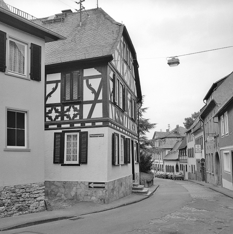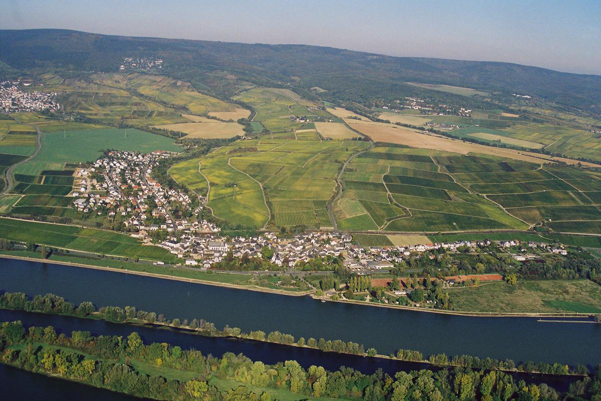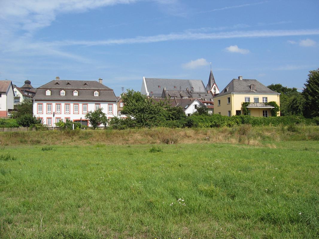 Alter Ortskern mit Gärten zwischen Rheinallee, Bahnlinie, Zimmerstraße/Weinbergstraße und Pfaffenberg,