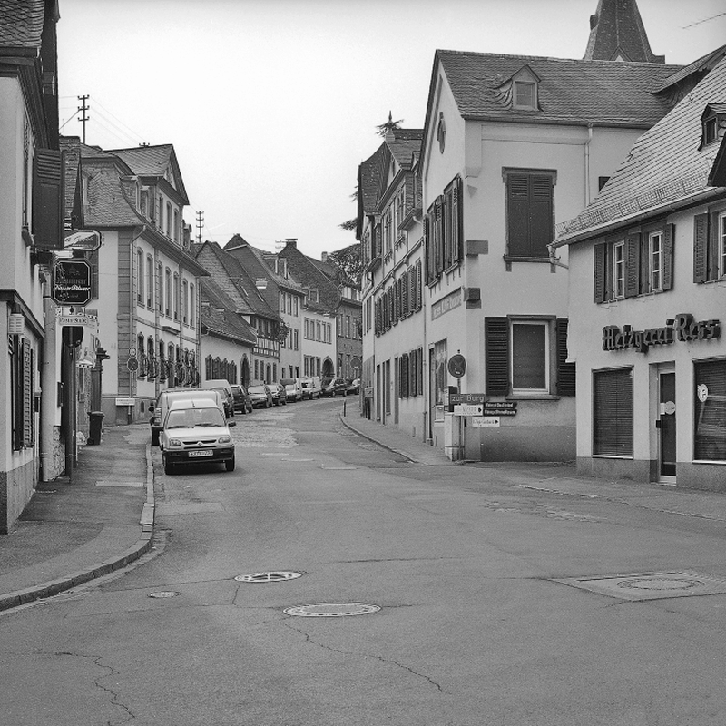 Hauptstraße und weitere Straßen mit teilweise erhaltener alter Kopfsteinpflasterung.