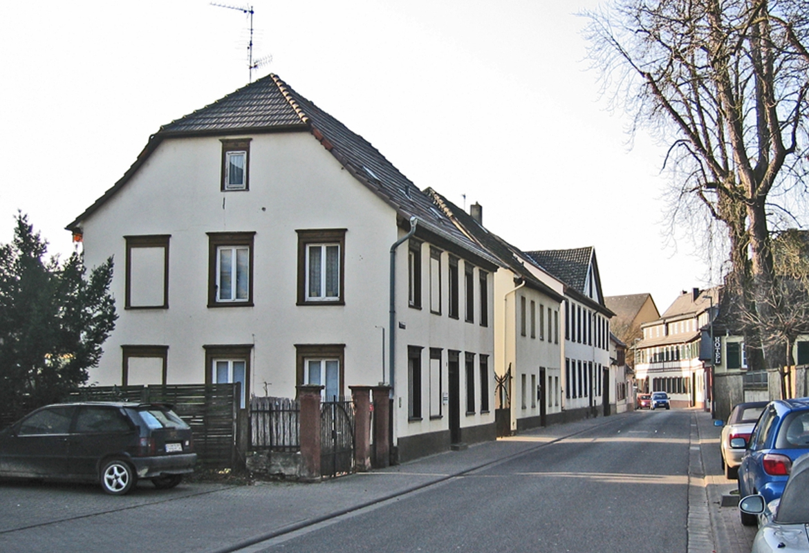 Hauptstraße 1 und 3: Ursprünglich Häuser gleichen Typs aus der 1. Hälfte des 19. Jhs. Zweigeschossig, verputztes Fachwerk, fünfachsig mit Mitteleingang, Dach mit kleinen Walmen. Nur bei Nr. 1 die originalen verzierten Fensterumaus Holz, dagegen in Nr. 3 die qualitätvolle alte Haustür mit Oberlicht erhalten. Zwischen beiden Häusern ein schmiedeeisernes Gitter, Nr. 1 mit Einfriedungsgitund Torpfo. Im Garten kleine Nebengebäude. Hauptstraße 5: langgestrecktes schlichtes Bieaus der 1. Hälfte des 19. Jhs. Verputztes Fach, 9 Fensterachsen, Mitteleingang. Zwerchhaus als breiter Dreiecksgiebel mit Rundbogenfenster, seitlich überbaute rechteckige Einfahrt. UrsprüngFensterteilungen und Klappläden fehlen.