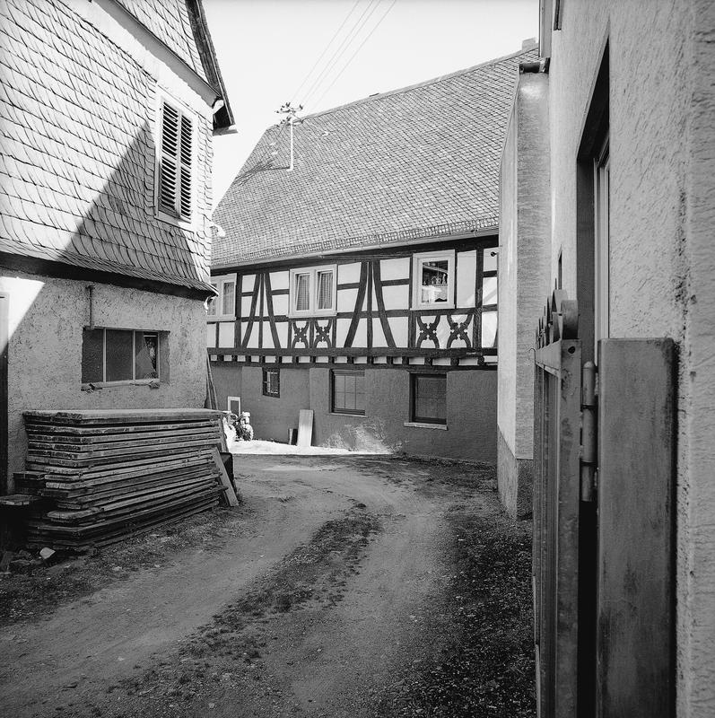 Der Hof soll an einer alten, jetzt nicht mehr vorhandenen Wegeführung gelegen haben und die Namensgebung nach der langgestreckten Grundstücksform aus jüngerer Zeit stammen. Das Fachwerkwohnhaus des 16. Jhs. bildet mit Wirtschaftsflügeln des 19. Jhs. eine winkelförmige, weit von der Straße zurückliegende Baugruppe. Über verändertem, massivem Erdgeschoss hofseitig verschieferte Giebelfassade. Die dekorative Fachwerkfiguration des Obergeschosses mit geschwungenen, geschosshohen Streben und geschnitzten Feuerböcken in den Brüstungsfeldern ist nur an der westlichen Traufseite sichtbar. Am südlichen Eckpfosten ein geschnitztes Hauswappen mit Baudatum 1566; hier ein Fenster mit Ohrengewände. Hohes, verschiefertes Satteldach. Eine wertvolle, bauzeitliche Stuckdecke aus geometrischen Profilen wurde 1999 bei Umbauarbeiten zerstört (siehe Abb. S. 88). Durchgang mit geschweiftem Sturz; im Gewölbekeller rundgemauerter Ziehbrunnen (Tiefe nach mündlicher Auskunft ca. 11 m), der früher bis in die darüber liegende Diele reichte.
