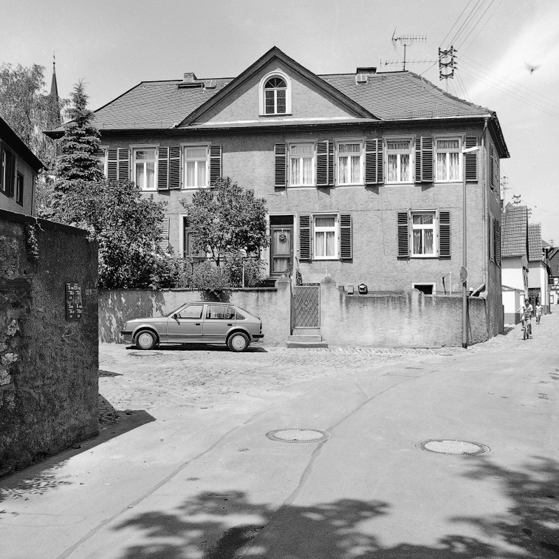 Biedermeierliches Wohnhaus aus der 1. Hälfte des 19. Jhs., ähnlich Hauptstraße 5; möglicherweise auch ein im Kern älterer, dann umgestalteter Bau. Über hohem Keller massive Erdgeschoss- und Giebelwände, Obergeschoss der Traufseite aus verputztem Fachwerk. Flachgeneigtes Walmdach, über der Langseite ein Dreiecksgiebel mit Rundbogenfenster. Ursprünglich acht Fensterachsen. Durch die nachträgliche Einteilung mit zwei Eingängen und Vermauerung von Öffnungen wurde die ehemalige Fassadensymmetrie gestört. Kleiner, durch eine Mauer abgeschlossener Vorgarten, darin die Freitreppe zum hochgelegenen Eingang.