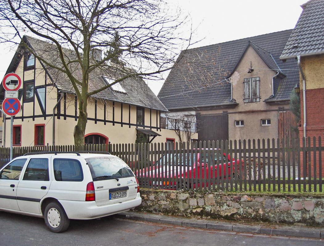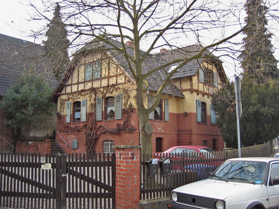 Verwalterhaus mit Krüppelwalmdach, hochgezogenem Backsteinsockel, Fachwerkelementen, Stichbogenfenstern und Klappläden nimmt den Mittelpunkt des Grundstückes ein. Daneben ein kleines, eingeschossiges, verputztes Gebäude mit Fachwerkgiebel und Krüppelwalmdach. Dahinter bildet eine quergelagerte Scheune mit Satteldach und Mittelzwerchhaus sowie rechtwinkligem Flügel mit Fachwerk-Obergeschoss den Abschluss des gepflasterten und eingefriedeten Hofes. Die Gebäude in ihrer traditionellen Formensprache orientieren sich ebenso wie die Arbeiterhäuser an der Waldbachstraße an zeitgenössischen Regeln für ländliche Zweckbauten.