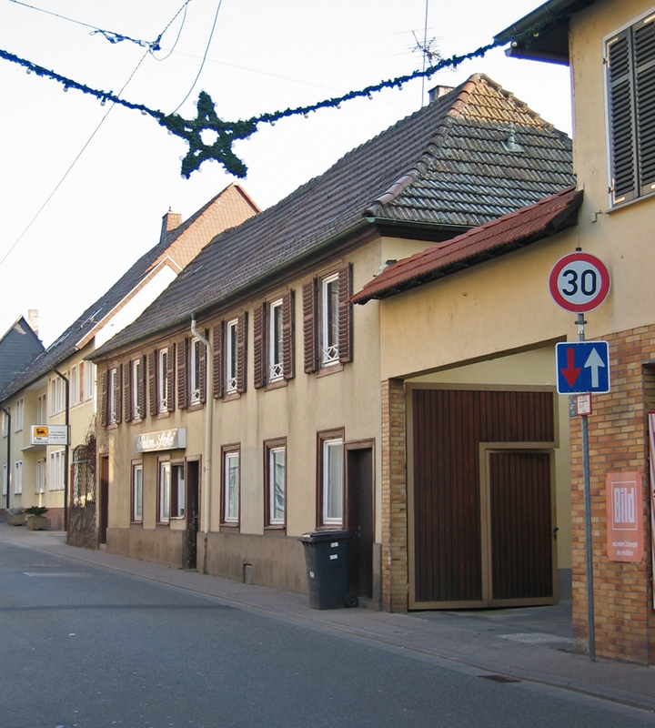 Schlichter Traufenbau der Zeit um 1800 mit Walmdach. Über sieben Achsen langgestreckt, errichtet aus verputztem Fachwerk, mit drei straßenseitigen Eingängen. Im Obergeschoss ist die Fassade weitgehend ungestört mit hochformatigen Fenstern, Brüstungsgittern und Klappläden erhalten. Wichtiger Bestandteil der geschlossenen Bebauung der Hauptstraße im Ortskern.