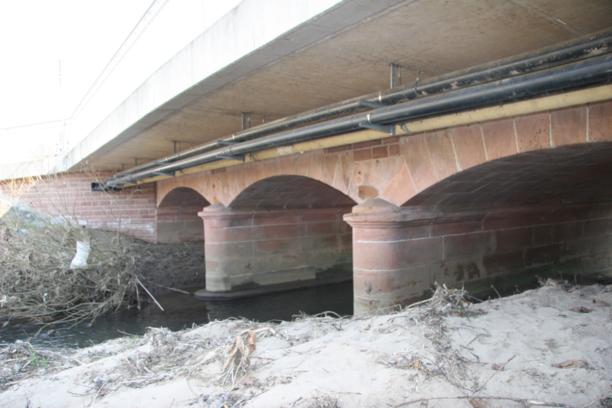 Die über den Glaubersgraben führende Brücke ist als dreibogige Brücke aus großformatigen Sandsteinquadern errichtet, die sich in flach gewölbten Bögen auf gerundete, oberhalb der Wasseroberfläche in Sandsteinquadern gefügte Poller stützt. Die Brückenwangen sind zu den Böschungen hin abgeschrägt und ebenfalls sandsteinverkleidet. Die Fahrbahn wurde in jüngerer Zeit durch eine aufgesetzte Fahrbahn verbreitert und den aktuellen Verkehrsansprüchen angepasst. Das im ausgehenden 19. Jahrhundert errichtete Brückenbauwerk, das die städtische Erweiterung Dieburgs nach Südwesten hin dokumentiert, ist aus geschichtlichen Gründen geschützt.