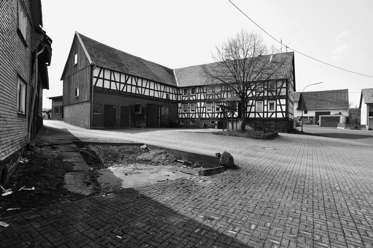 Die große winkelförmige Hofanlage schließt den Dorfkern wirkungsvoll nach Südwesten ab. Das giebelständige Wohnhaus, ursprünglich wohl Teil eines Einhofs aus der Zeit noch vor der Mitte des 19. Jahrhunderts, zeigt einen symmetrischen Fassadenaufriss und ein konstruktives Gefüge mit Geschossstreben, das durch zumeist schräggestellte Stiele unterhalb der Fenster aufgelockert wird. Im Winkel angebaut ist ein jüngerer Wirtschaftstrakt, dessen Obergeschoss ebenfalls als konstruktives Fachwerkgefüge aufgerichtet ist. Hier wurden mehrere beschriftete Querbalken wiederverwendet, die auf den Zimmermeister Heinrich Zinn aus Storndorf und ein Baujahr 1823 hinweisen.