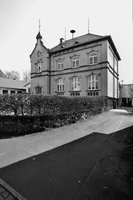 Von der Straße zurückgesetzter, querorientierter heller Backsteinbau zu zwei Geschossen über mehrfarbigem Basaltsockel. Gestalterisch wirkungsvoll sind Segmentbogenfenster in aufwendiger Rahmung, farbig abgesetzte Gesimse und ein seitlicher Eingangsrisalit mit originaler zweiflügeliger Tür und einem Giebel in Renaissanceformen. Auf dem schiefergedeckten Walmdach sitzen kleine Spitzgauben und reiche Firstbekrönungen. Die Datierung in der Wetterfahne lautet auf 1902. Das im regionalen Vergleich recht anspruchsvolle Beispiel eines ländlichen Schulgebäudes der Wende zum 20. Jahrhundert ist Kulturdenkmal aus orts- und baugeschichtlichen Gründen.