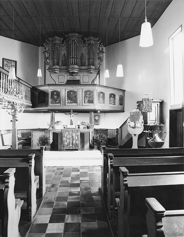 Das Geländer der Orgelempore ist mit gemalten Tafeln versehen; dargestellt sind Brustbilder von sechs Männern, darunter die Apostel Thomas, Andreas und Matthäus, in segmentbogigen Rahmungen. Die Bilder dürften von einer ursprünglich im Chor eingebauten Emporenanlage stammen.