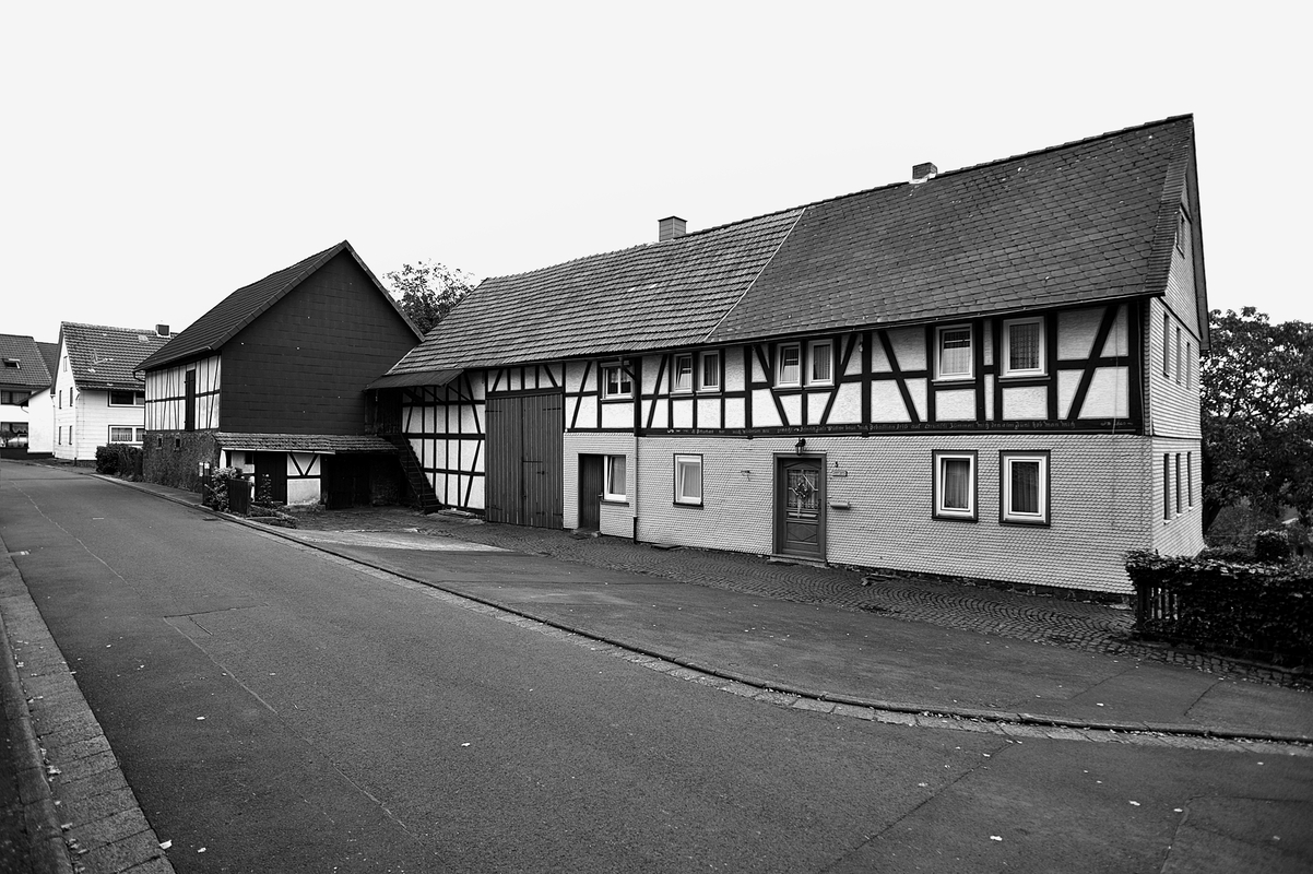 Großer traufständiger Streckhof unmittelbar südlich der Kirche. Ältester Teil ist der zweizonige Wohnteil, der an der ganzen Giebelseite und zum Hof hin nach Vogelsberger Art nur im Erdgeschoss verschindelt ist, während oben das konstruktive Fachwerk sichtbar blieb. Das Wohnhaus stammt nach der Stockschwelleninschrift im Kern aus 1840: "Heinrich Joste Wittwe baut mich Sebastian Fritz aus Creunfeld Zimmert mich den 12ten Juni hob man mich." Der Hof wurde bis in das 20. Jahrhundert hinein vergrößert, wobei weiterhin konstruktives Fachwerk zur Anwendung kam.