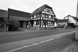 Bedeutende mehrteilige Hofanlage. Separat von den Wirtschaftsgebäuden und giebelständig zur Straße ist das dreizonige und zweigeschossige repräsentative Fachwerkwohnhaus errichtet. Es stammt - über erneuertem Hauptgeschoss - noch aus dem 18. Jahrhundert und weist eine fortschrittliche Konstruktion auf, die durch gebogene Geschossstreben ausgesteift wird und durch Dreiergruppen von Wandständern und schräge Hölzer in den Brüstungsgefachen Akzente erhält. Das steile Dach ist mit Krüppelwalmen versehen, der straßenseitige Giebel zeigt einen regelmäßigen Balkenraster, dessen durchlaufende Ständer mit einem 'Fries' aus Kopfwinkelhölzern abschließen.