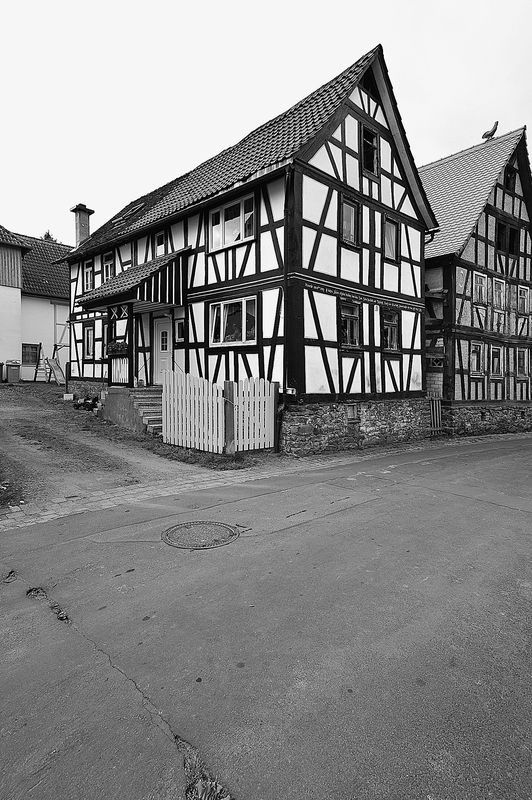 Das dreizonige, giebelständige Fachwerkwohnhaus dürfte ursprünglich ein Wohn-Stall-Haus gewesen sein; sein konstruktives Gefüge über hohem Bruchsteinsockel blieb im Wesentlichen erhalten. Es wird bestimmt durch regelmäßig angeordnete Geschossstreben und schräg gestellte Stiele unter den Fenstern. Das Quergebälk, bei dem im wenig veränderten vorderen Hausabschnitt die Stockschwelle direkt auf dem Rähm des Hauptgeschosses zu liegen scheint, zeigt noch ein feines Profil. Zur Straße gerichtet ist die Bauinschrift: "Reinrod am 8ten Mey ist dieses Haus erhoben worden, von bau Herr Peter Bechtold und Phileph Koch von Fauerbach, Zimmermeister als man zehlt 1823 Jahr."