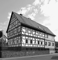 Das wenig vor oder auch erst kurz nach dem Zweiten Weltkrieg erbaute zweigeschossige Fachwerkwohnhaus weist eine späte Variante der Mann-Figur auf, deren Kennzeichen ausgeprägte Kopfstreben sind. Außerdem ist als Reminiszenz an den älteren Fachwerkbau eine Geschossauskragung angedeutet. Insbesondere aber kommt dem Gebäude, das traufständig über der Hauptstraße aufragt, auch in der Fernwirkung eine städtebauliche Bedeutung zu.