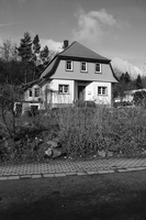 Eingeschossiges verputztes Landhaus mit markantem Krüppelwalm-Mansarddach, dessen Giebelfront mit Schindeln verkleidet ist. Der Eingang in der Mitte der nach Osten gerichteten Schmalseite tritt zwischen erkerartig ausgebildeten Risaliten zurück. Das Haus wurde 1928 erbaut und ist im Zusammenhang mit der Landhauskolonie, in der es zeitweise als Poststelle oder auch als Café diente, Kulturdenkmal.