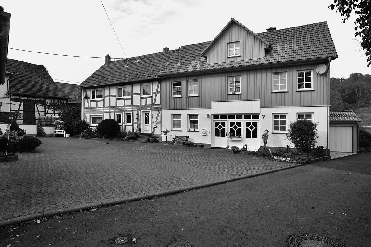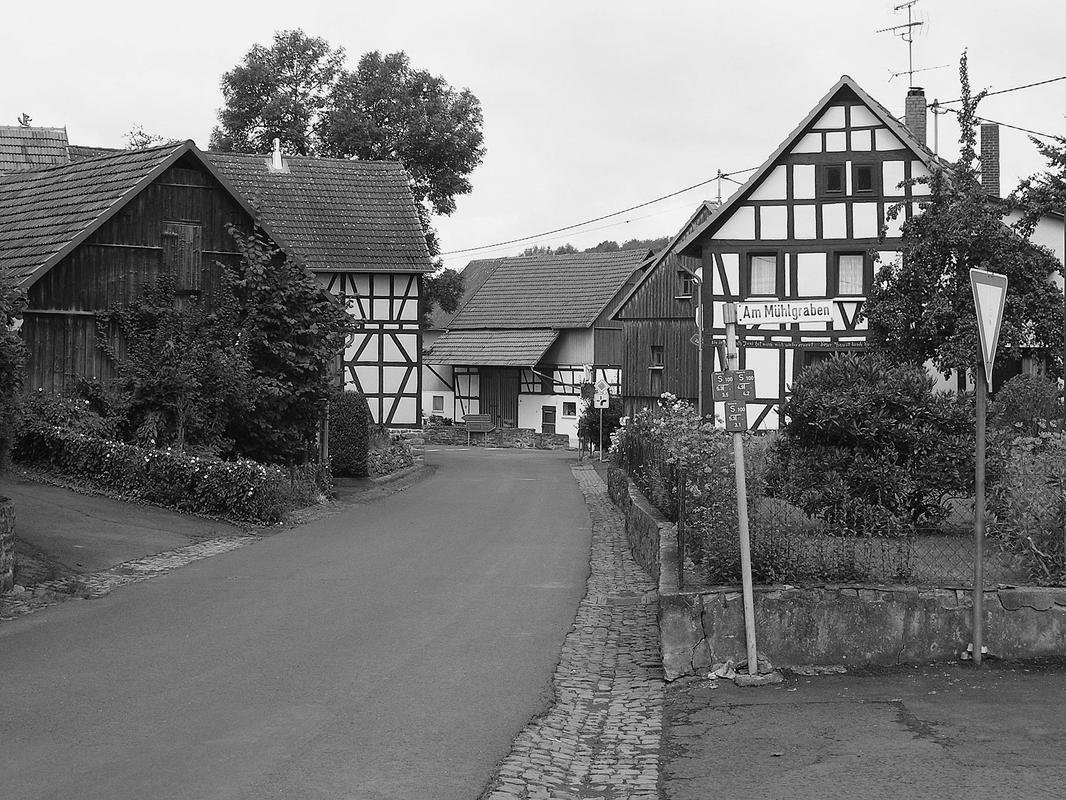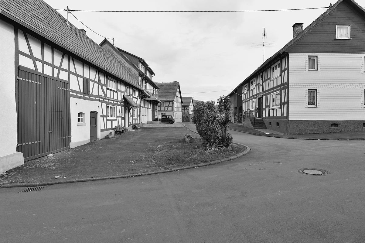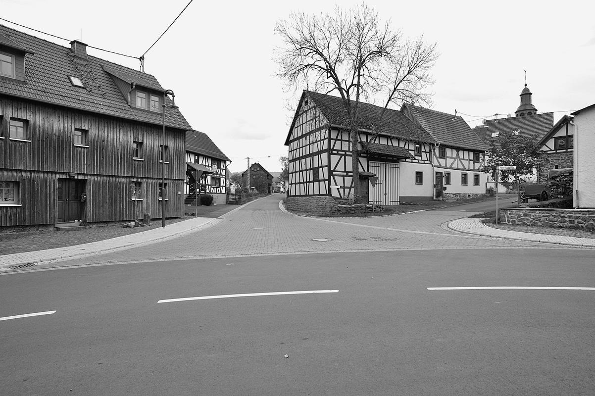 Die Gesamtanlage umfasst den relativ gut erhaltenen Dorfkern, dessen Nordgrenze der Streitbach bildet. Die Verkehrserschließung erfolgt wesentlich durch Steinweg und Peter-Fuchs-Straße, die einen weiten Bogen bilden. „Sehne" dieses Straßenbogens ist die schmalere Kirchstraße, benannt nach dem Fachwerkgotteshaus, das hier unprätentiös und ohne Kirchhof in die dichte und unregelmäßige Bebauung aus verschiedenartigen Hofformen integriert ist. Der parallel zur Kirchstraße verlaufende Klapperbach ist verrohrt. Eine Anzahl Verbindungs- und Stichwege ergänzt das Straßensystem, darunter ist die Mittelstraße von besonderer Bedeutung. Die Hofanlagen, meist in jüngerer Zeit ergänzt und erweitert, reichen vereinzelt bis in das 17. Jahrhundert zurück (Mittelstraße 5, Peter-Fuchs-Straße 12), gehören aber zumeist dem 19. Jahrhundert an (Backhausweg 5, Kirchstraße 1, Peter-Fuchs-Straße 9A und 18, Puschweg 2 seien als verschiedenartige Beispiele hierfür genannt). Einige ansprechende Haustüren aus der Zeit um 1900 sind erhalten geblieben (u. a. Am Mühlgraben 3, Stammwiesenweg 6, Steinweg 3 und 12), sie dürften von Schreinern in Wohnfeld und Sellnrod gefertigt worden sein.