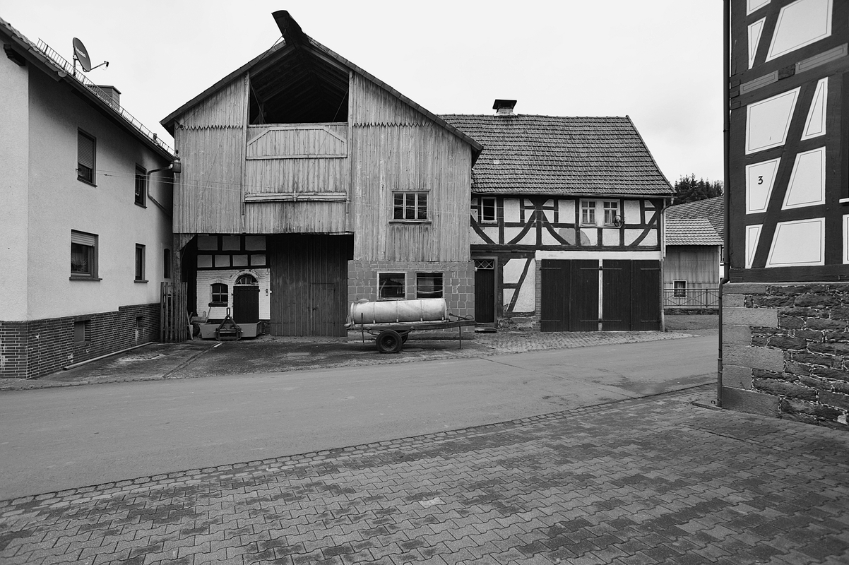 Der ehemalige Streckhof steht mit seiner Rückseite zum Bach. Die Front ist durch einen Vorbau vor Stall und Scheune sowie durch eine Garage in der ehemaligen Stube gestört. Bemerkenswert aber bleibt das Fachwerk im Obergeschoss des Wohnteils aus der zweiten Hälfte des 18. Jahrhunderts mit auffallend breiter Stuben- und Gangzone. Das Gefüge ist gekennzeichnet durch schön ausgebildete, breite Mann-Figuren mit kurzen Halsriegeln und gebogenen Fußstreben. Die exponierte Giebelseite ist mit Platten verkleidet. Links neben der Tenne besteht die Fassade eines Stalleinbaus aus dem beginnenden 20. Jahrhundert.