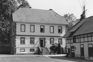 Die nach Süden anschließenden langgestreckten ehemaligen Wirtschaftsbauten sind im Erdgeschoss verputzte Massivbauten mit Sandsteingewänden und Eckquaderungen, das Obergeschoss wurde in schlichtem Fachwerk aufgesetzt. Die Gebäude wurden im Rahmen der neuen Nutzung als Gebäude des Golfclubs umgebaut.