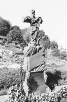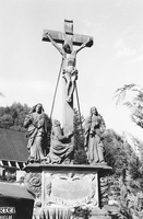 Oberhalb der Burgringstraße dehnt sich am Hang der Friedhof der Stadt Bad Orb aus. Bis in die zweite Hälfte des 18. Jahrhunderts wurden die Toten im Kirchhof nördlich der Martinskirche begraben. Wegen Überbelegung des Kirchhofes stellte am 29.3.1773 der Amtskeller beim erzbischöflichen Generalvikariat den Antrag auf Verlegung des Kirchhofes an den jetzigen Platz dem so genannten "Bangert". Hier stand bereits ein Heiligenhäuschen und zwei Grabsteine zeugten davon, dass 1605 schon einige Fremde begraben worden waren. Am 5.4.1774 wurde der neue Friedhof eingeweiht. Die Nachbarschaft zum jüdischen Friedhof sorgte aber bereits 1775 für Ärger in der Kirchengemeinde. Johannes Holzmann, der Sohn des Anfang Juni 1775 verstorbenen Bäckers Jakob Holzmann, beschwerte sich in einem Brief darüber, dass jetzt alle Verstorbenen auf dem kürzesten Weg zum neuen Friedhof durch das Obertor und an dem jüdischen Friedhof vorbei getragen werden müssten, was in den Bevölkerung zu Streitigkeiten führte. Aufgrund des starken Bevölkerungs- Burgringstraße o. Nr., Friedhof, Kreuzigungsgruppe wachstums musste der neue Friedhof 1816, 1885 und 1959 erweitert werden.