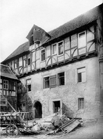 Ehemaliges Gesindehaus, ein schmales, langgestrecktes und zweigeschossiges Gebäude mit Fachwerkobergeschoss unter Satteldach mit einseitigem Krüppelwalm, das 1778 auf spätmittelalterlichen Fundamenten entstand und im Innern Reste des Wehrgangs der alten Umfassungsmauer erkennen lässt. Bei Bickell sind noch im 1. Obergeschoss die teilweise zugesetzten gekuppelten Fenster der Erbauungszeit zu sehen, die leider bei der Sanierung nicht berücksichtigt wurden.