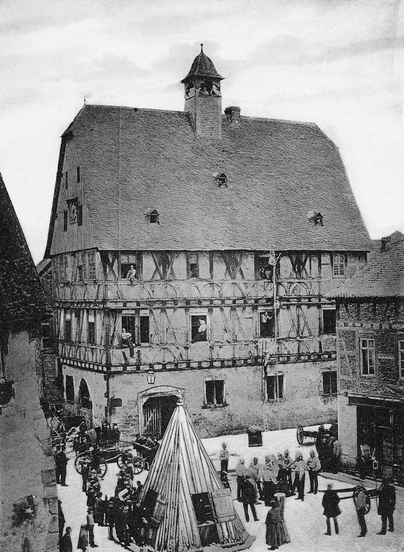 1852 vernichtete ein Brand das gesamte Stadtquartier zwischen Stadtmauer, der damaligen End- und der Jössertorgasse. Ihm fielen 75 Wohnhäuser, 39 Scheunen und Nebengebäude zum Opfer. Das planlos gewachsene und verdichtete Quartier, das aus dem bayrischen Katasterplan ersichtlich nur durch kleine Gassen unregelmäßig erschlossen wurde, erhielt beim Wiederaufbau eine klare Gliederung mit den beiden parallel verlaufenden Verkehrsachsen Gutenberg- und Gretenbachstraße, die in regelmäßigen Abständen durch Quergassen verbunden werden. Aufgrund der hohen Verluste der teils mit Stroh gefüllten Holzscheunen ordnete die bayerische Regierung den Bau von Steinhäusern und -scheunen an. Statt der zerstörten 114 Gebäude sollten nur noch 69 Häuser und Scheunen errichtet werden, "und zwar bis zum Giebel einschließlich in Sandstein".