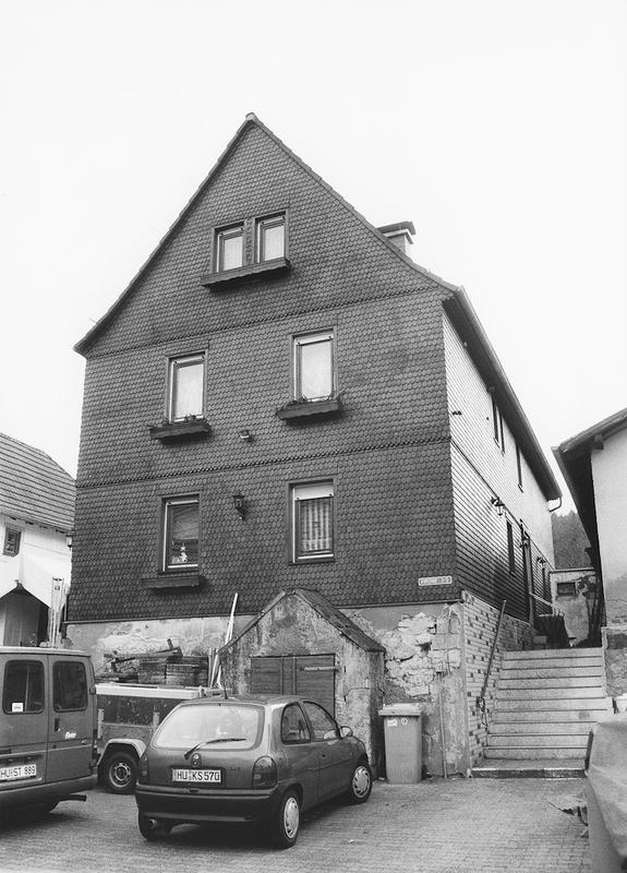 Giebelständiges, dreigeschossiges Gebäude auf einer großen Parzelle, rückseitig an die Stadtmauer stoßend. Auf hohem ehemaligen Stallkeller zwei verschindelte Fachwerkobergeschosse, auf einer historischen Aufnahme ist traufseitig einfaches Sichtfachwerk mit Diagonalstreben zu erkennen. Erschliessung traufseitig über hohe einhüftige Treppe.