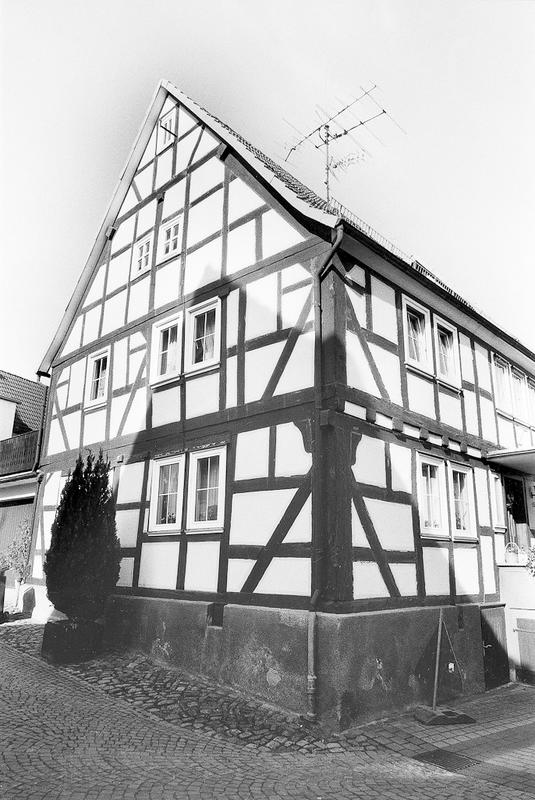 In Ecklage am Platz vor der Kirche gelegenes, zweigeschossiges Fachwerkhaus unter Satteldach mit Aufschiebling. Hoher Kellersockel ehemals mit Stallnutzung. Das Sichtfachwerk mit halben Lauterbacher Mannfiguren an den Ecken datiert das Gebäude in die erste Hälfte des 18. Jahrhunderts.
