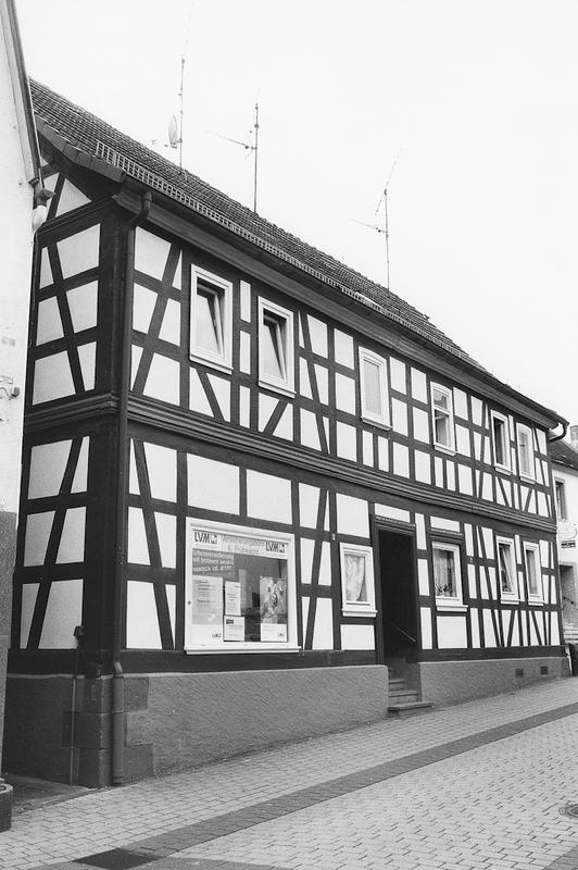 Klar gegliedertes, einfaches Sichtfachwerk mit hohen Diagonalstreben und profilierter Rähm, über den Türrahmen die Inschriften: "Erbaut von IHS Weisgerbers Wittib Z M CH Rau D 17 Juni 181..“ und "ERBAUT VON CH RAU UND DESSEN EHEFRAU D 17 JUNI 1815“. Eckquader am Sockel mit Initialen F L und R R und Jahreszahl 1815. Gemeinsames Satteldach mit Aufschieblingen.