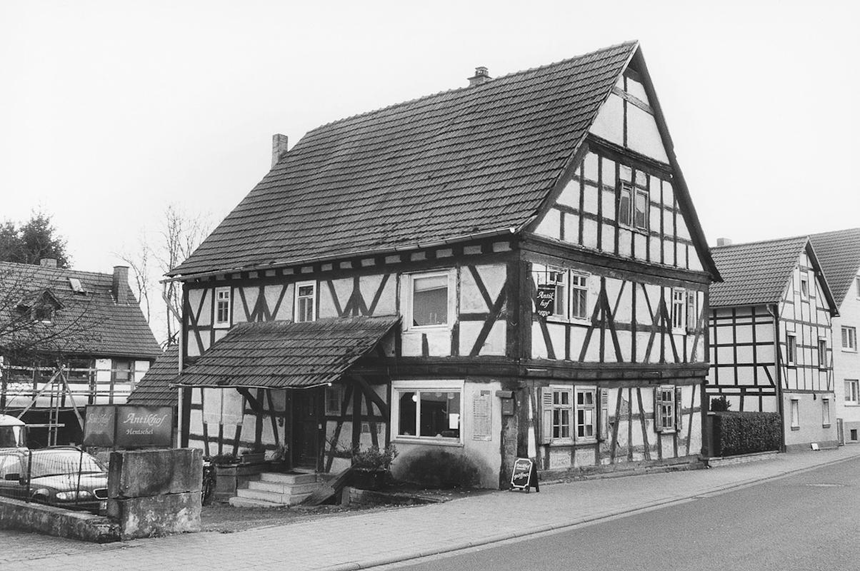 Giebelständiges zweigeschossiges Fachwerkwohnhaus aus dem 17. Jahrhundert. Schlichte Fachwerkformen mit kräftigen Eckständern, leicht vorkragenden breiten Rähmzonen, profiliertem Schwellenkranz und hohen Diagonalstreben mit kurzen Gegenstreben. Giebel des aufgeschobenen Satteldaches ortstypisch ohne Diagonalstreben. Die Ausfachung mit Lehmstakung wurde teilweise durch Ziegel ersetzt. Erschliessung des Gebäudes traufseitig. Auf der Giebelseite noch die originale Lage der Fenster mit zweiflügeligen Fenstern und geteilten Oberlichtern des 19. Jahrhundert erhalten.