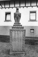 Kriegerdenkmal aus dem 2. Viertel des 20. Jahrhunderts für die Gefallenen des 1. Weltkrieges aus Sandstein. Rechteckiger, 1,40 m hoher Sandsteinsockel, nach unten leicht konisch zulaufend, darauf mit Zackenband gerahmte Schriftfelder, darüber auf dreifach gestuften Podest ein Reichsadler in Sandstein von 1,15 m Höhe.