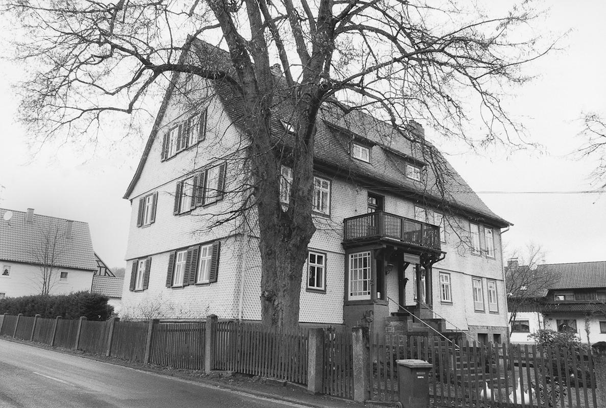 Forsthof aus dem 18. Jh., im 19. Jh. um zwei Fensterachsen nach Norden erweitert. Zweigeschossiger Fachwerkbau auf hohem, massivem Kellergeschoss mit Stallnutzung und tiefliegendem Kellereingang in rundbogigem Sandsteingewände. Eingang über hohe Freitreppe. Rückwärtiger Toilettenanbau. Gegenüberliegend große Stallscheune aus dem Ende des 19. Jahrhunderts, Ziegelbau mit Fachwerkobergeschoss. Hof mit Wildpflaster aus Sandstein belegt. Schöner Baumbestand mit drei großen Linden, die auch das Straßenbild prägen. Das Anwesen ist aus historischen Gründen als Sachgesamtheit geschützt.