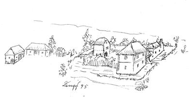 Haus an der Linde: kleiner Massivbau aus der ersten Hälfte des 18. Jahrhunderts.