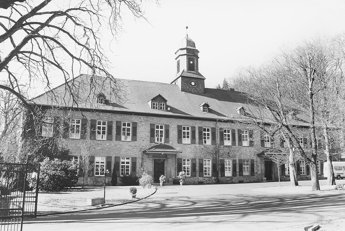Große Dreiflügelanlage mit freistehenden Nebengebäuden im Stil der klassizistischen Schlossanlagen. Breitgelagertes, zwölfachsiges Hauptgebäude in Sandsteinquadern mit Eckquaderung und schlichten Sandsteingewänden. Walmdach mit spitzgiebligen Gauben, in der Mittelachse ein verschieferter Dachreiter auf quadratischem Fuß mit Ochsenauge, oktogonaler, gestufter Haube, Schallarkaden und Firstbekrönung.