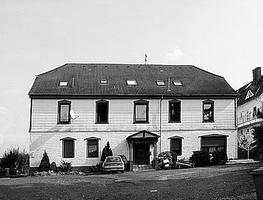 In exponierter Lage oberhalb der Kirche das ehemalige Forstmeistersche Amtshaus des Gerichtes Aufenau. Nach der Teilung der Familie von Forstmeister 1544 wohnte hier der evangelische Familienzweig, während der katholische in Schloss Kinzighausen residierte. Nach Aussterben des evangelischen Zweiges seit 1747 Amts- und Verwaltungsgebäude. 1766 war hier das Büro eines Werbers für Ausreisewillige nach Russland. In bayerischer Zeit diente das Gebäude als Zollstation. 1863 kaufte Prof. Nicolaus Adriot aus der französischen Schweiz das Anwesen, um dort Käse nach französischer Rezeptur herzustellen. Die Käsefabrik führte zu einem wirtschaftlichen Aufschwung der armen Dörfer Aufenau und Neudorf. Nach dem Tod Adriot''s 1869 kam die Fabrik in Besitz seines Schwiegersohnes, 1878 übernahm Louis Prinz aus Wächtersbach das Unternehmen "Erste deutsche Weichkäserei Nic. Adriot Nachfolger“. Der Käse aus Aufenau erhielt aufgrund seiner guten Qualität etliche Goldmedaillen, die Produktion wurde 1955 eingestellt.