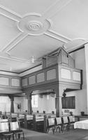 Im Innern flachgedeckter Saalbau mit geometrisch gegliederter Stuckdecke. Die schöne originale Ausstattung von 1777 mit dreiseitiger Empore, Bänken und Kanzel erhalten.