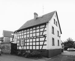 Zweigeschossiges, giebelständiges Wohnhaus, Anfang 19. Jahrhundert, in schlichtem, konstruktivem Fachwerk auf verputztem, massivem Kellersockel mit Backsteinfassade, Ende des 19. Jahrhundert vorgesetzt. Fenstergewände in Sandstein, Satteldach mit Aufschiebling. Dachgeschoss mit Ortgesims und halbem Okulus, Madonnennische in der Fassade.