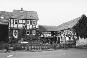 Dreiseitige, u-förmige Hofanlage mit zentralem, traufständigem, zweigeschossigem Wohnhaus, Ställen und Scheune aus der Mitte des 19. Jahrhunderts. Fachwerkwohnhaus mit Erdgeschoss und Sockel aus Sandsteinquadern unter Satteldach. Anschließend Ställe, Erdgeschoss in verputztem Massivmauerwerk, z.T. mit Lattenverkleidung und Fachwerkobergeschoss, rechtwinklig dazu Sandsteinscheune, in Ziegel vergrößert.