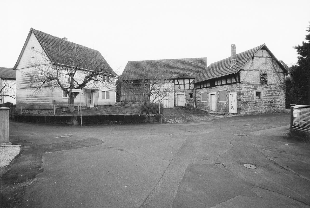 Offene, großzügige Dreiseithofanlage aus dem frühen 19. Jahrhundert, bestehend aus einem zweigeschossigen Wohnhaus, einer querstehenden Fachwerkscheune mit großem Tor und integriertem Stall und einem massivem Stallgebäude mit Fachwerkdrempel. Die alte Hofpflasterung ist erhalten.