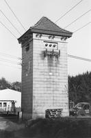Eternitverkleiderter Trafoturm aus der Zeit der Elektrifizierung des Brachttals, aus den frühen 1920er Jahren, Zeltdach mit Aufschiebling. Unter der Verkleidung ist analog zu den anderen Trafostationen der Gegend verputztes Mauerwerk, evtl. mit einzelnen Bossen als Dekoration, zu vermuten.